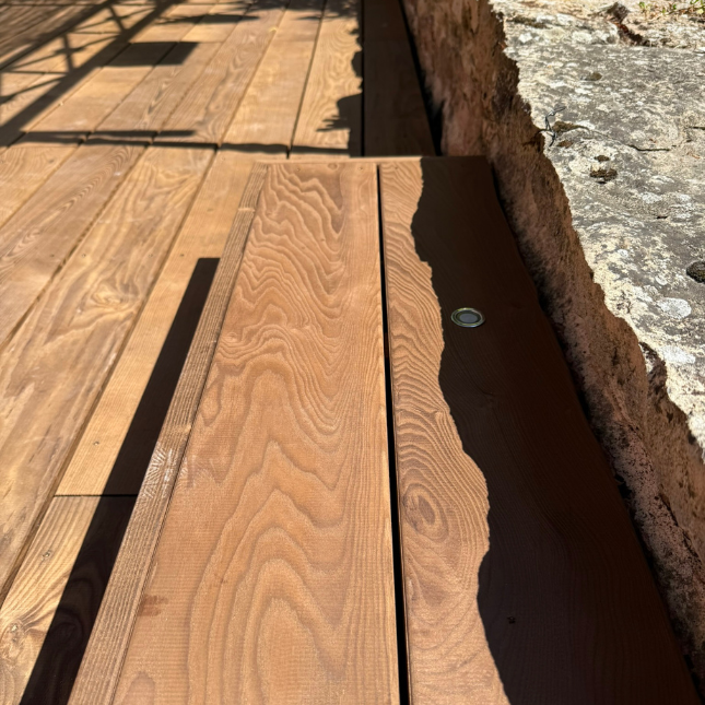 Je réalise des terrasses bois en matériaux haut de gamme, avec fixation invisible sans vis apparentes, lambourdage bois ou aluminium et conception adaptée à l’exposition et à l’usage.