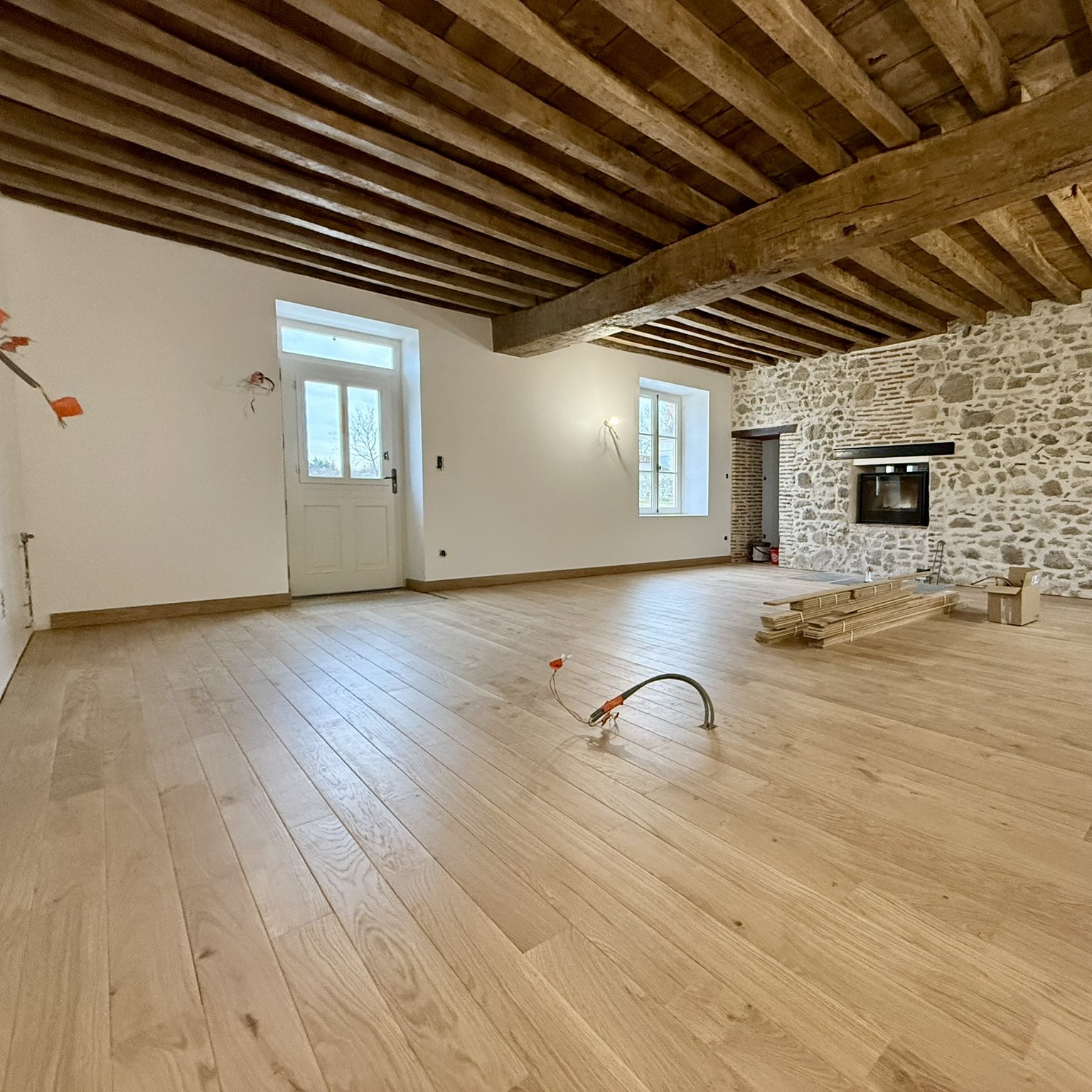 Pose d’un parquet en chêne dans un ancien presbytère : le résultat dépasse nos espérances, bravo à l"équipe pour son savoir-faire et son savoir vivre ! À recommander +++